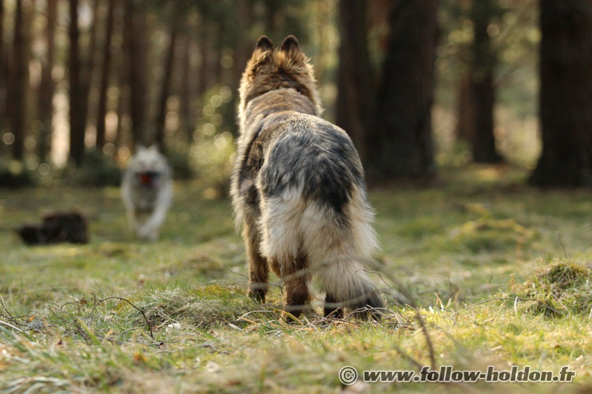 Une fois rentrés, notre maitre est parti seul avec Hold’On pour un peu d’éducation, marche au pied, absence, pas bouger etc… (et parait qu’elle a super bien bossé !) mais aussi pour chercher des bois de cerfs.