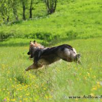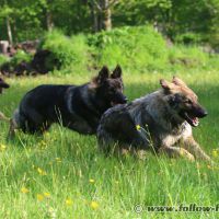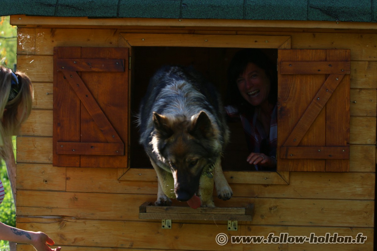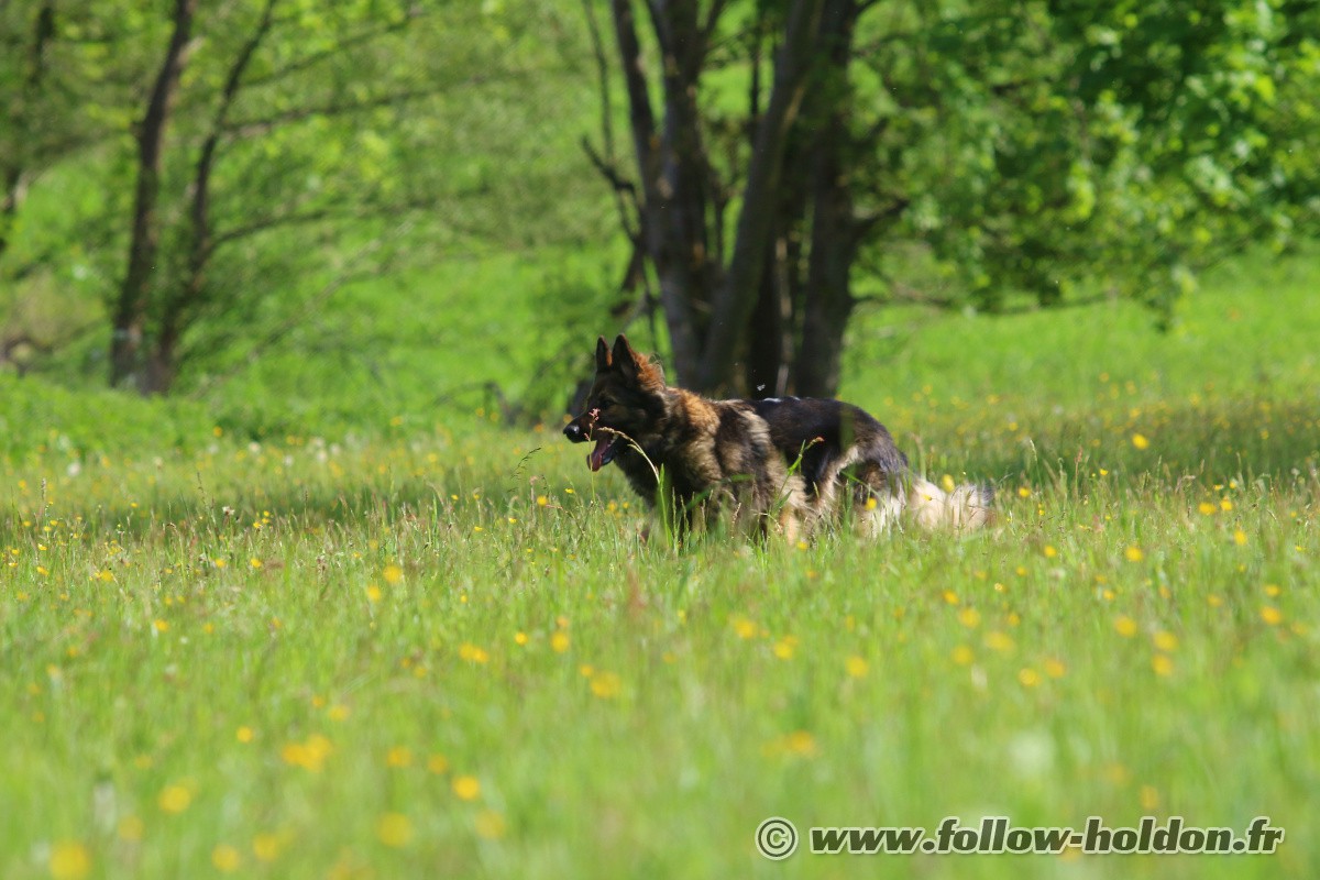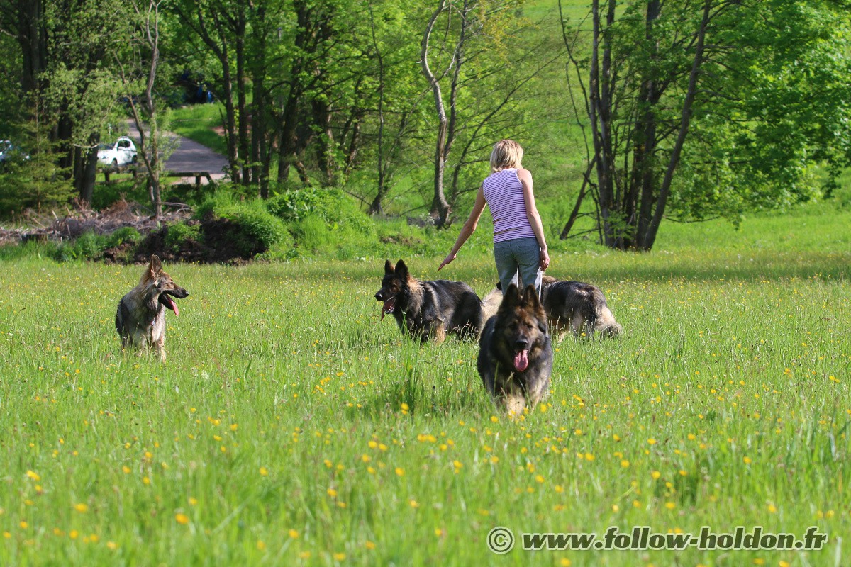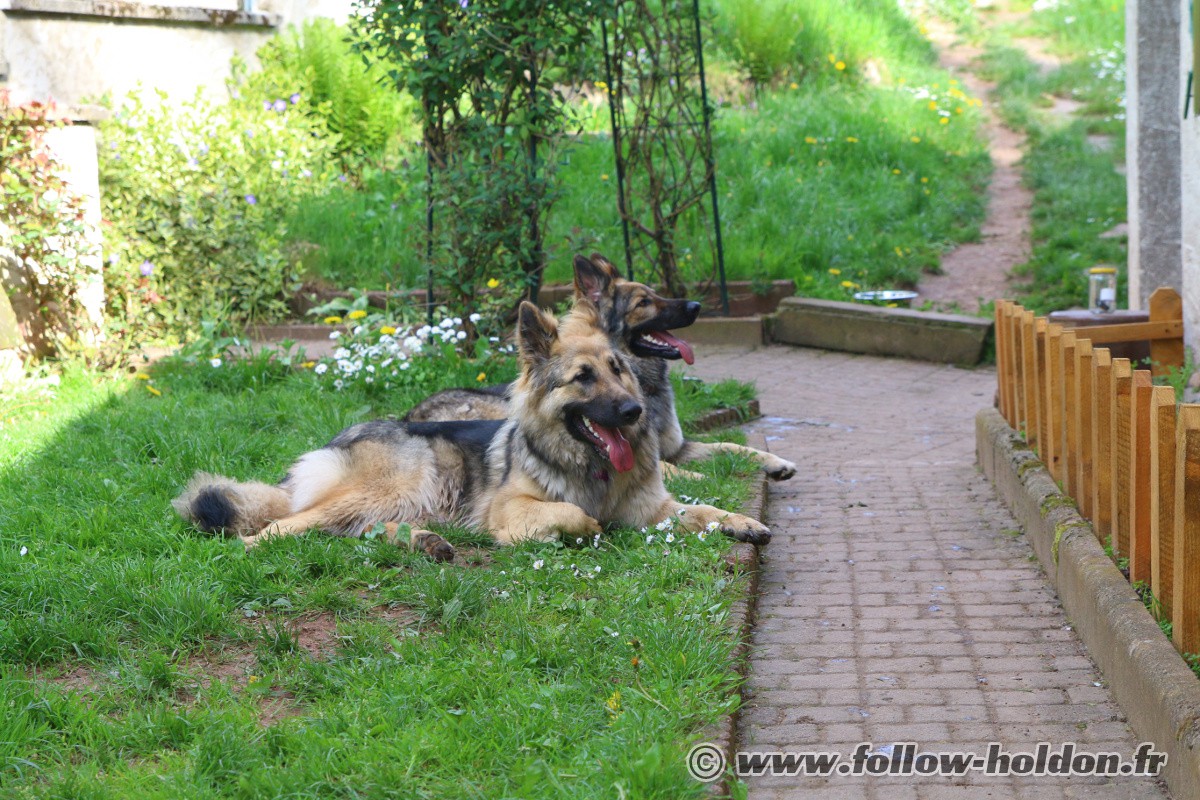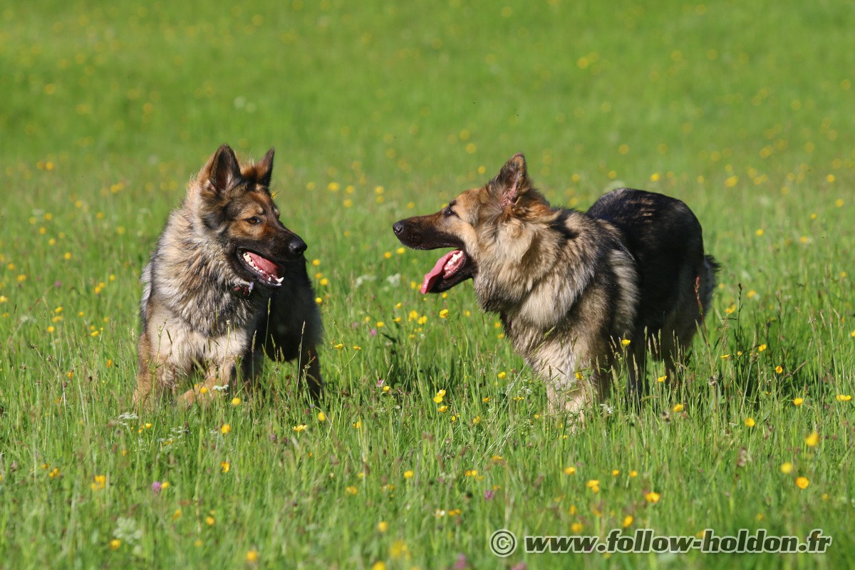 Chaïny est venu faire sa curieuse et là Willow a sans doute eu un peu peur et s’est débattu pour s’extirper, Follow est monté d’un cran (toujours sans y mettre les crocs mais avec de gros grondements) et puis les humains ont décidé de mettre un terme à ça, et hop, le Follow rattaché en laisse et ca s’est très bien passé comme ça pour la suite…