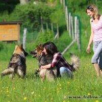 Alors notre maitre aimerait à son tour féliciter les familles qui vivent avec ces chiots aujourd’hui, parce-que de ce qu’on a vu hier, ils ont eux aussi fait un chouette travail avec leurs chiens et ils leurs ont permis de grandir dans la même optique que celle du départ, et à un an maintenant, ce sont vraiment de bons loulous, des chiens agréables, joyeux, gentils, déconneurs, marrants, des chiens avec lesquels ils passeront une belle tranche de vie, et inversement, nos chiots évoluent aux côtés de personnes vraiment sympas !