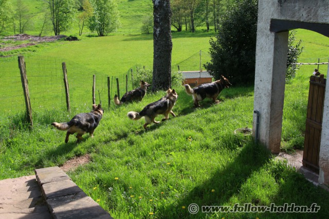 En début de journée, ils ont fait une balade sans moi (Chaïny, Willow et Follow) pour tester un peu l’entente entre les deux bonhommes.